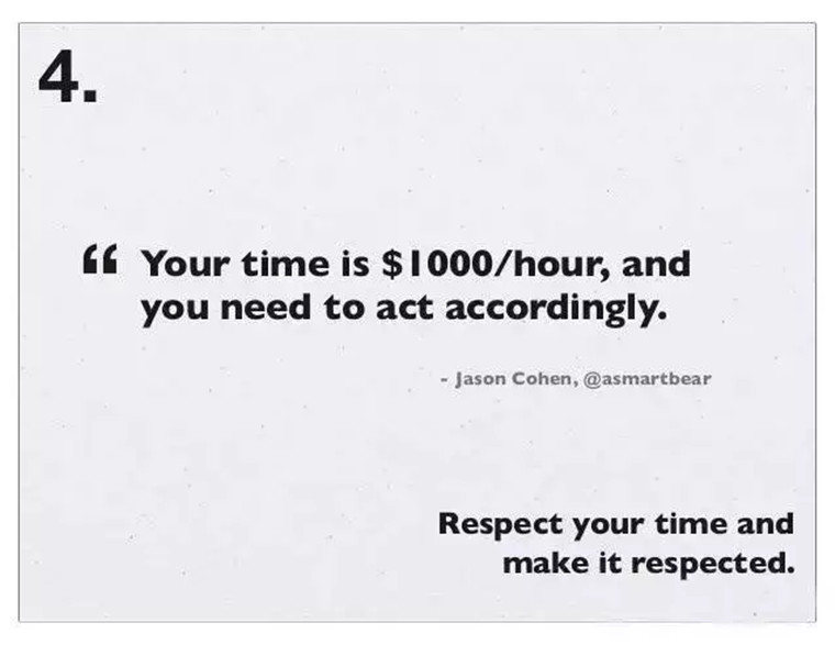4、重视你的时间,并使其值得重视:你的时间值 1000 美元/小时,你得动起来。