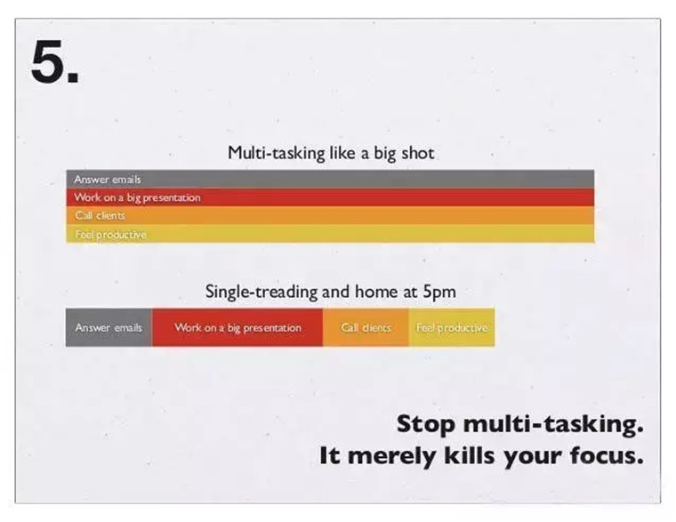 5、不要多使命,这只会消耗注重力;坚持专注,一心一用。