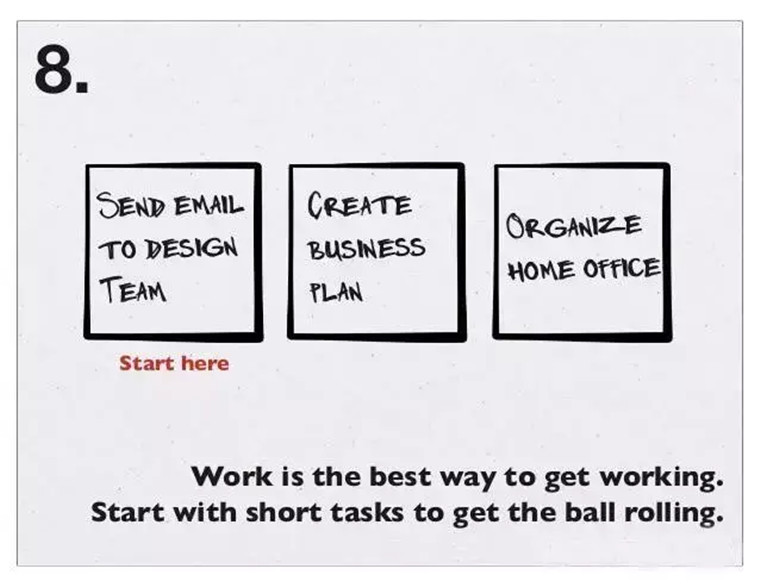 8、进入事情状态的最佳方法就是事情,从小使命最先做起,让事情运转起来。