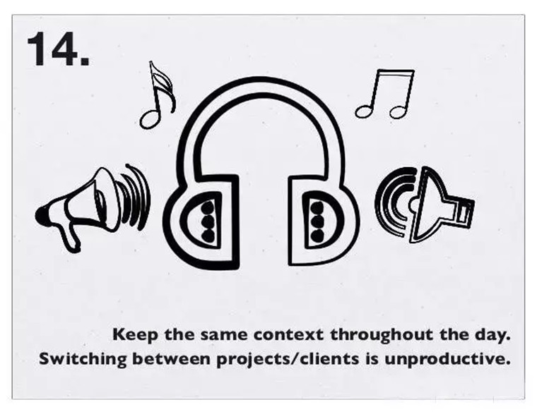 14、一整天坚持相同的事情情形。在项目/客户之间切换,会效率低。