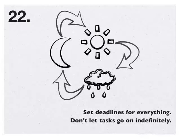 22、给所有事情都设定一个限期。不要让事情无限期地举行下去。