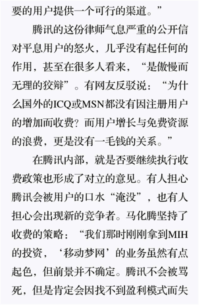 深读之后发明,着实全书真正的焦点在于透过腾讯可以视察到的中国企业逻辑,其中许多基于国情而降生的特殊能力,已往或受诟病或被追捧,而本书作者可以以越发客观的姿态对其举行剖析,这无疑是一种今世创业者和企业家应当学习的姿态和能力。