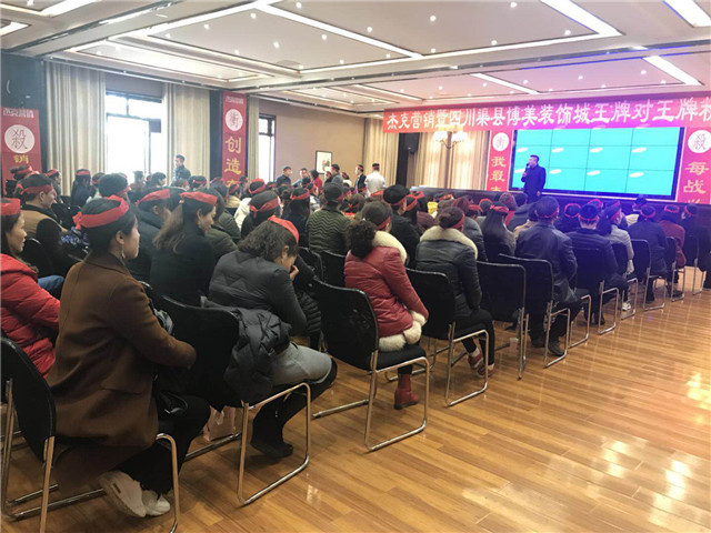 本网讯(谢碧静报道) 为了备战博美装饰城渠县阛阓将于2018年3月17日举行的主题为“王牌对王牌”——开年盛典促销运动,鼓舞商家士气,让商家系统学习营销知识,同时让商家及其事情职员熟悉整个运动流程,以便更好的为消耗者提供服务,博美装饰城渠县阛阓于克日携手北京杰克营销在渠县碧瑶庄园二楼配合召开 “王牌对王牌”——开年盛典促销运动全员启动培训大会。