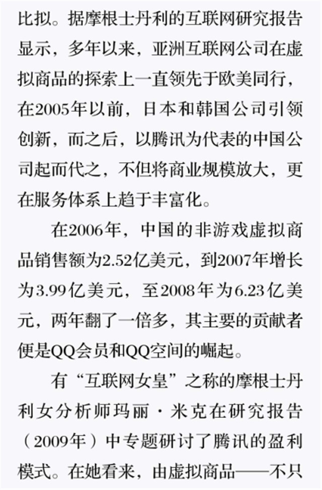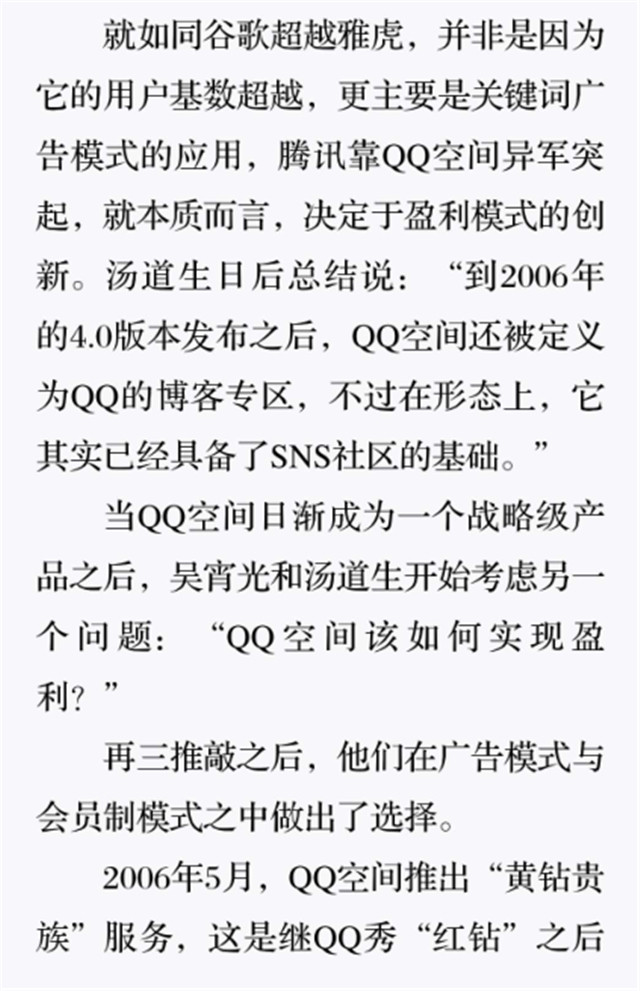 深读之后发明,着实全书真正的焦点在于透过腾讯可以视察到的中国企业逻辑,其中许多基于国情而降生的特殊能力,已往或受诟病或被追捧,而本书作者可以以越发客观的姿态对其举行剖析,这无疑是一种今世创业者和企业家应当学习的姿态和能力。