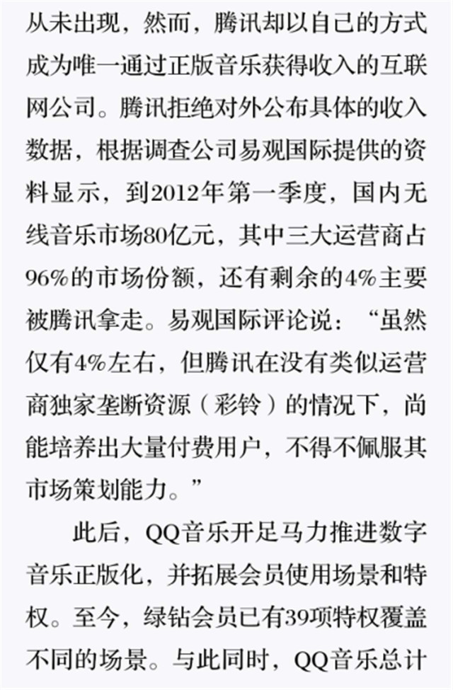 深读之后发明,着实全书真正的焦点在于透过腾讯可以视察到的中国企业逻辑,其中许多基于国情而降生的特殊能力,已往或受诟病或被追捧,而本书作者可以以越发客观的姿态对其举行剖析,这无疑是一种今世创业者和企业家应当学习的姿态和能力。