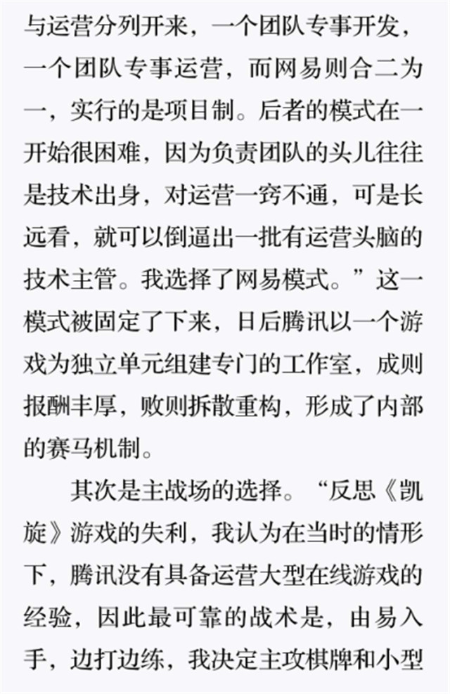 深读之后发明,着实全书真正的焦点在于透过腾讯可以视察到的中国企业逻辑,其中许多基于国情而降生的特殊能力,已往或受诟病或被追捧,而本书作者可以以越发客观的姿态对其举行剖析,这无疑是一种今世创业者和企业家应当学习的姿态和能力。