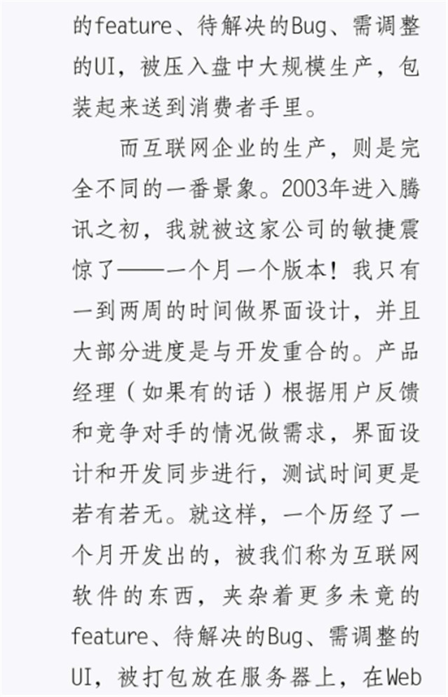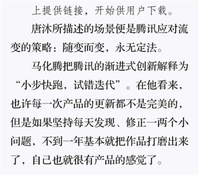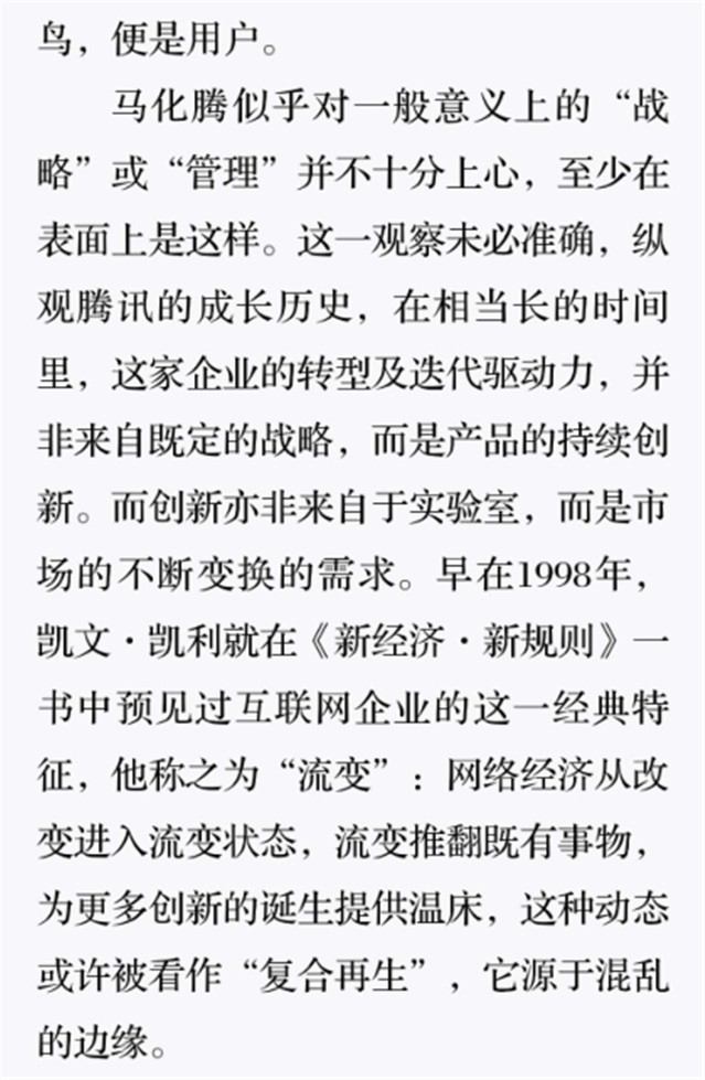 深读之后发明,着实全书真正的焦点在于透过腾讯可以视察到的中国企业逻辑,其中许多基于国情而降生的特殊能力,已往或受诟病或被追捧,而本书作者可以以越发客观的姿态对其举行剖析,这无疑是一种今世创业者和企业家应当学习的姿态和能力。
